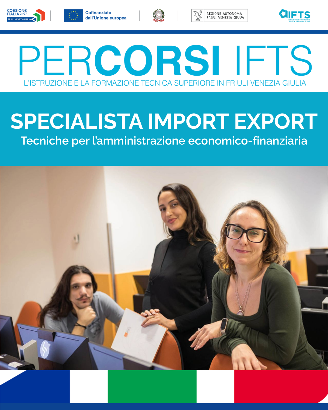 Il corso beneficia del sostegno cofinanziato dal Fondo sociale europeo Plus della Regione autonoma Friuli Venezia Giulia, nell’ambito dell’attuazione del PR FSE+.