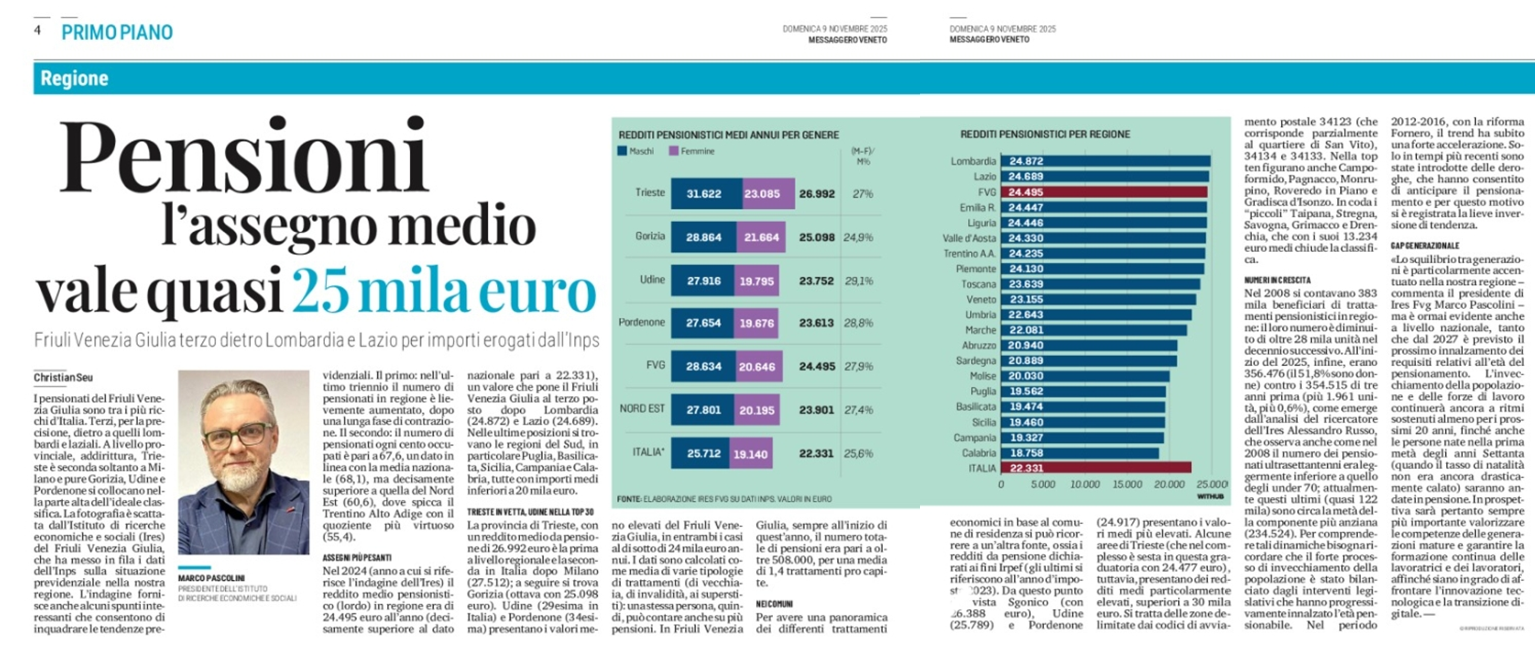 Pensioni. L’assegno medio vale quasi 25.000 euro Messaggero Veneto