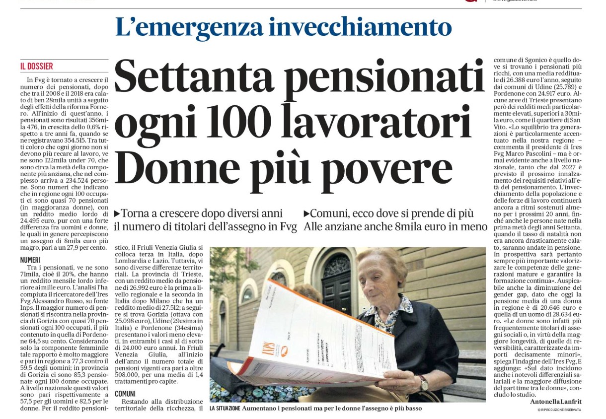 In Friuli Venezia Giulia crescono i pensionati: sono 70 ogni 100 occupati Studio Nord News