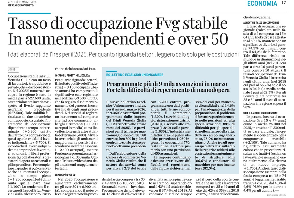 Occupazione stabile in Fvg nel 2025: più contratti a tempo indeterminato e boom di lavoratori over 50 Diario FVG